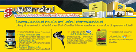 โปรแกรมขัดเคลือบสี  ทริปเปิ้ล แคร์ ขจัดริ้วรอยโดยไม่ทำร้ายผิวสี และยัีงปกป้องผิวสีรถให้เงางามสดใส